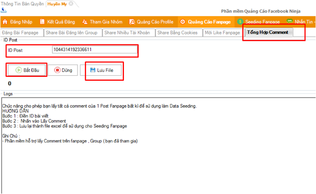 Tính năng Tổng hợp Comment bằng phần mềm facebook ninja